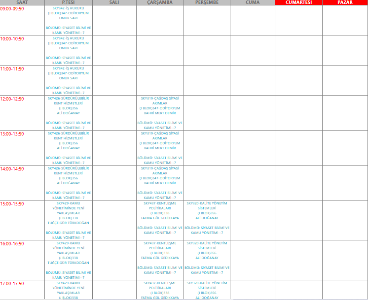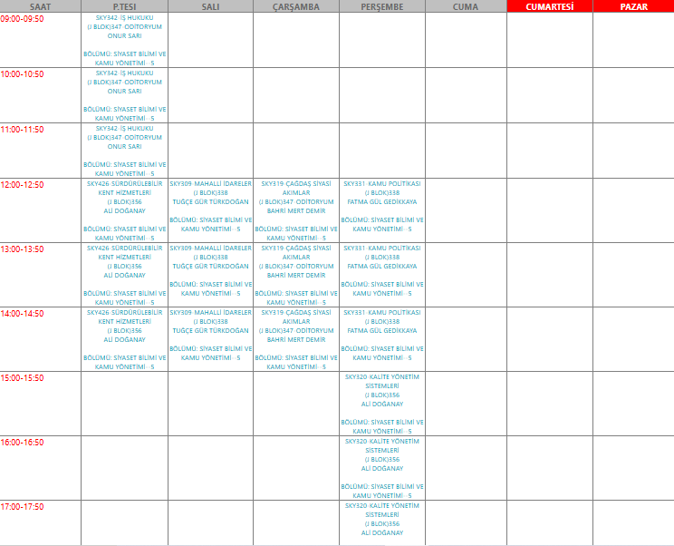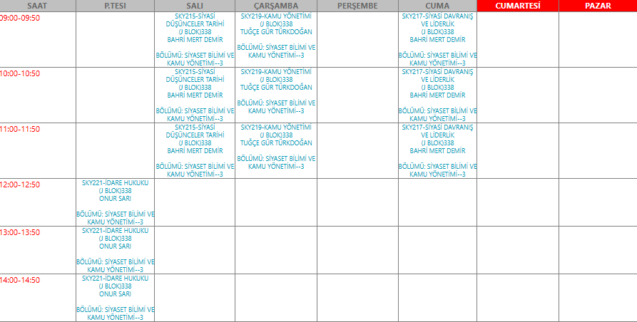 2024 - 2025 Güz Yarıyılı 3. Sınıf Ders Programı için tıklayın.